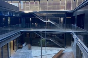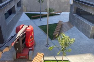 – Renovación completa del patio interior, como punto de encuentro y de estar, ajardinado, al que vuelcan y por el que respiran gran parte de las estancias administrativas previstas en el programa.